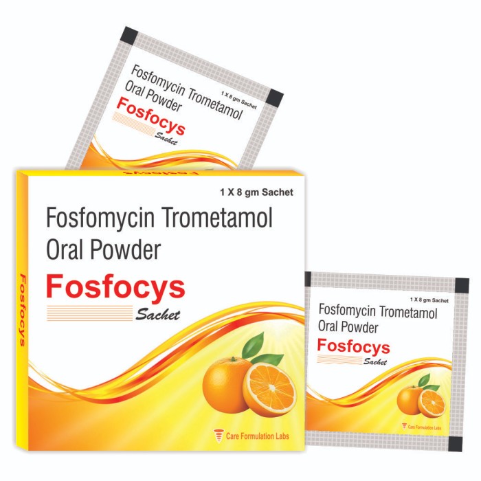 - Each Sachet contains : Fosfomycin Trometamol eq. to Fosfomycin 3gm Excipients q.s.