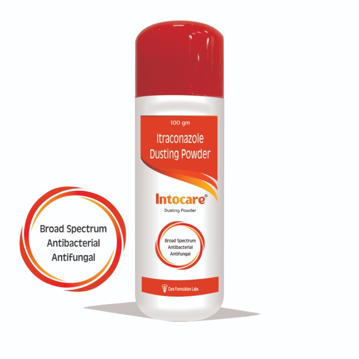 - Itraconazole Dusting Powder is an antifungal medicine that helps treat infections of the skin, fingernails, and toenails. It kills the fungi by destroying the fungal cell membrane. This way it stops the growth of fungus and heals the infections.