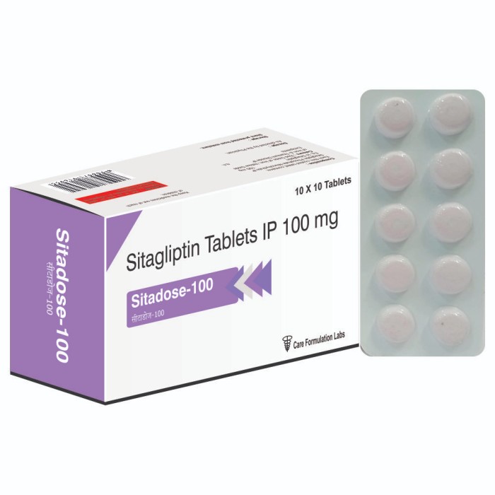 - Sitagliptin is used along with diet and exercise and sometimes with other medications to lower blood sugar levels in adults with type 2 diabetes (condition in which blood sugar is too high because the body does not produce or use insulin normally).