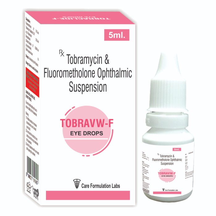 - Tobramycin + Fluorometholone is used for the treatment of bacterial skin infections. It should be applied to the affected areas as a thin film, two or three times daily, or as advised by your doctor. Do not use it more often or for longer than advised by your doctor