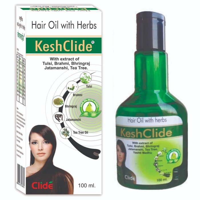 KeshClide Hair Oil is not just an oil; it is a comprehensive "Herbal Therapy" for your hair. It is a pure blend of 6 specially selected potent herbs—Tulsi, Brahmi, Bhringraj, Jatamansi, Tea Tree, and Yashti Madhu. This oil penetrates deep into the hair roots to provide essential nourishment, eliminates dandruff, and helps stop hair fall from the roots. Its non-sticky formula keeps your hair grease-free, smooth, and silky.