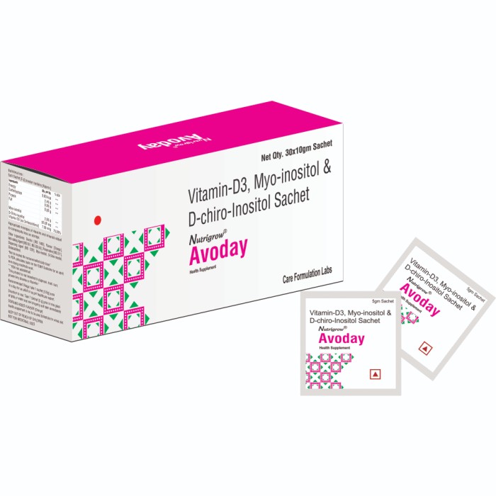 - Myo-inositol 2.00g + D-Chiro-inositol 50.00 mg + Vitamin D3 [as Cholecalciferol] 7.00 mcg