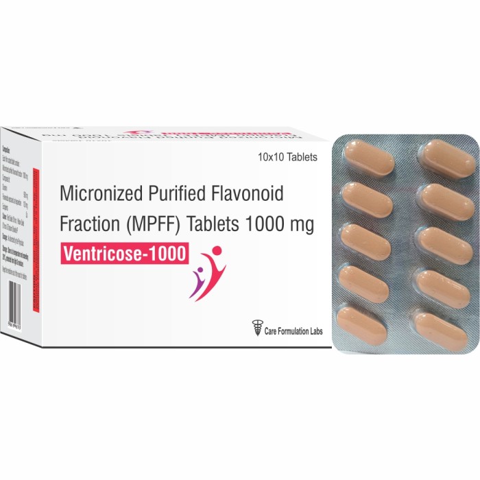 - Each film coated tablet contains : Micronized purified flavonoid fraction 1000mg Composed of : Diosmin 900mg + Flavonoids exprssed as hesperidine 100mg Excipients q.s.